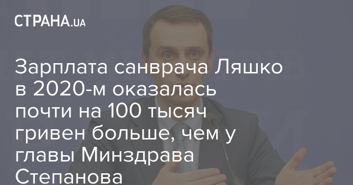 Зарплата санврача Ляшко в 2020-м оказалась почти на 100 тысяч гривен больше, чем у главы Минздрава Степанова