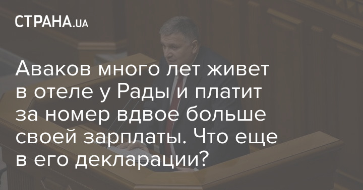 В декларации за 2020 год глава МВД указал аренду номера в гостинице "Киев" общей площадью 77,6 м2. Согласно информации на сайте гостиницы, номера такого размера стоят от 3 754 гривен за сутки. То есть за год Арсен Аваков тратит около 1 351 440 гривен на аренду жилья в столице.