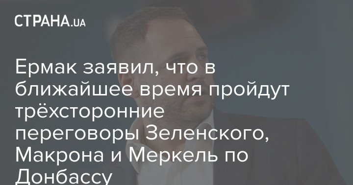 Глава Офиса президента Андрей Ермак подтвердил информацию о том, что скоро состоятся трёхсторонние переговоры президента Украины Владимира Зеленского, французкого лидера Эммануэля Макрона и канцлера Германии Ангелы Меркель.