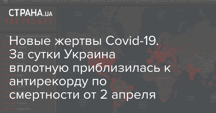 Умерло за сутки 430 пациентов, и это чуть меньше антирекорда 2 апреля 2021 года, когда в Украине умерло 433 человека.