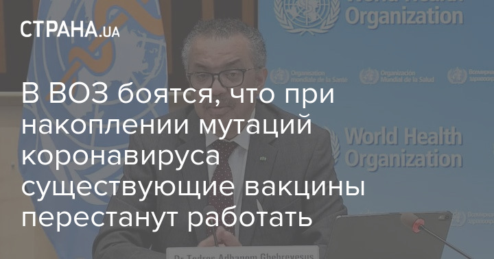"Как вы знаете, вирус быстро меняется, происходит мутация, и у нас есть несколько вариантов из разных стран. Если мутация вируса довольно значительная, если изменение поведения вируса довольно значительное, даже те вакцины, которые у нас есть сейчас, могут не сработать", - спрогнозировал Гебрейесус.