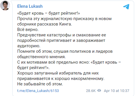 С их мотивами всё предельно ясно: "Будет кровь – будет рейтинг!". Хорошо запуганный избиратель для них приравнивается к хорошо накормленному.