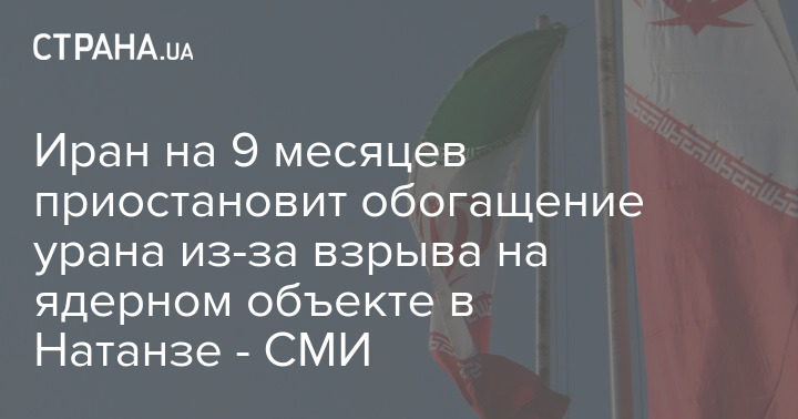 Иран на 9 месяцев приостановит обогащение урана из-за взрыва на ядерном объекте в Натанзе - СМИ