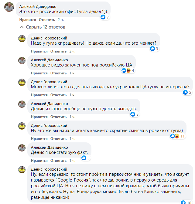 В комментариях у блогера Дениса Гороховского некоторые комментаторы заявили, что это как бы и не совсем позиция компании Google, а сделано исключительно "для российской целевой аудитории".