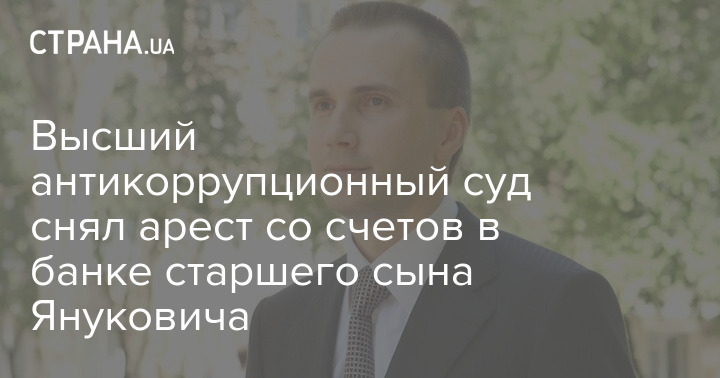 Высший антикоррупционный суд отменил арест денежных средств, а также ценных бумаг старшего сына бывшего президента Виктора Януковича Александра, которые хранятся в трех украинских банках.