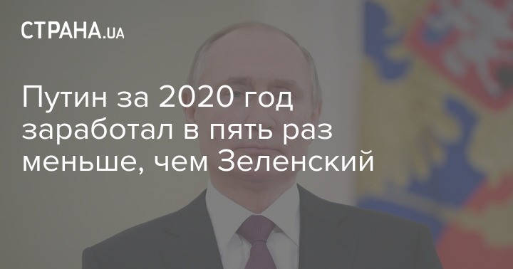 Президент России Владимир Путин за 2020 год заработал 9,994 млн рублей (3,692 млн грн).