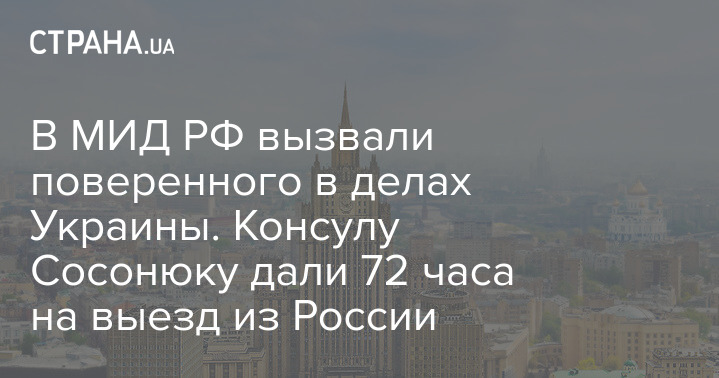 В России после задержания украинского консула в Санкт-Петербурге вызвали в МИД поверенного в делах Украины. В ходе беседы ему заявили, что Сосонюку желательно покинуть территорию страны в течение 72 часов.