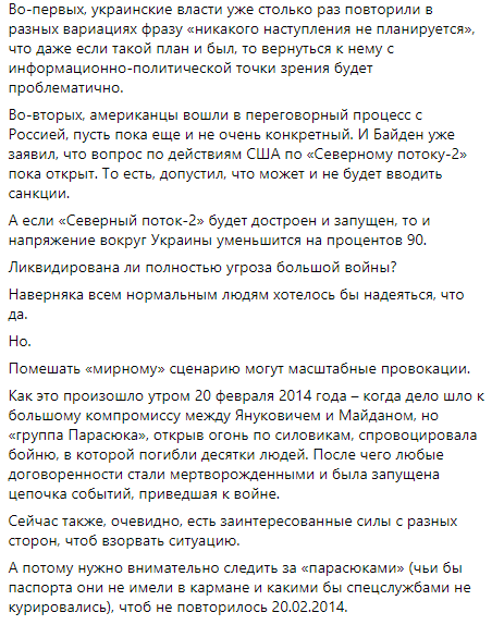 А потому нужно внимательно следить за "парасюками" (чьи бы паспорта они ни имели в кармане и какими бы спецслужбами ни курировались), чтоб не повторилось 20.02.2014".