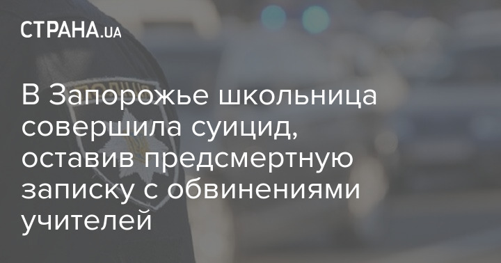 В Запорожье школьница покончила жизнь самоубийством, перед этим оставив предсмертную записку. В ней девочка написала, что в школе одноклассники и учителя ее травили и унижали. В полиции открыли уголовное производство.