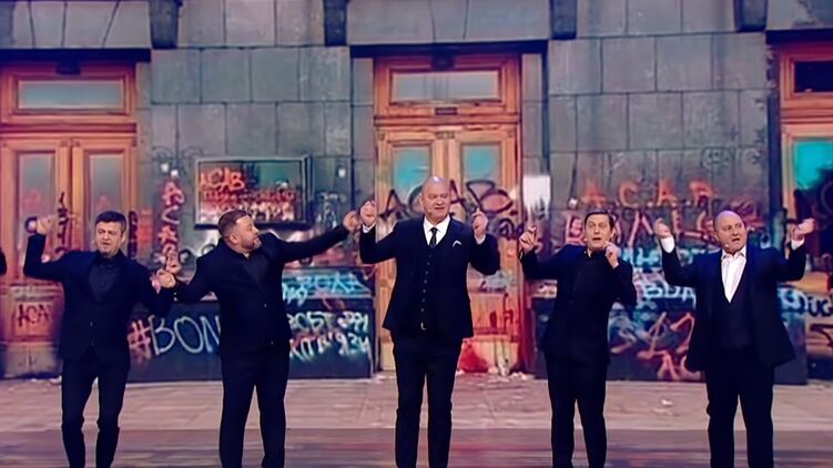 На сцене, во время вступительной песни, комики пели и танцевали на фоне слайд-шоу снимков, иллюстрирующих актуальные события в Украине за последние месяцы.