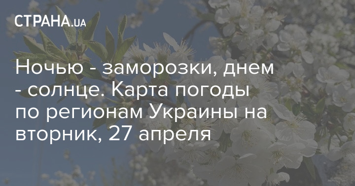 Во вторник, 27 марта, на большей части в Украины после ночных заморозков выйдет солнце. А южные и юго-восточные регионы накроет дождем. Об этом сообщает Укргидрометцентр.