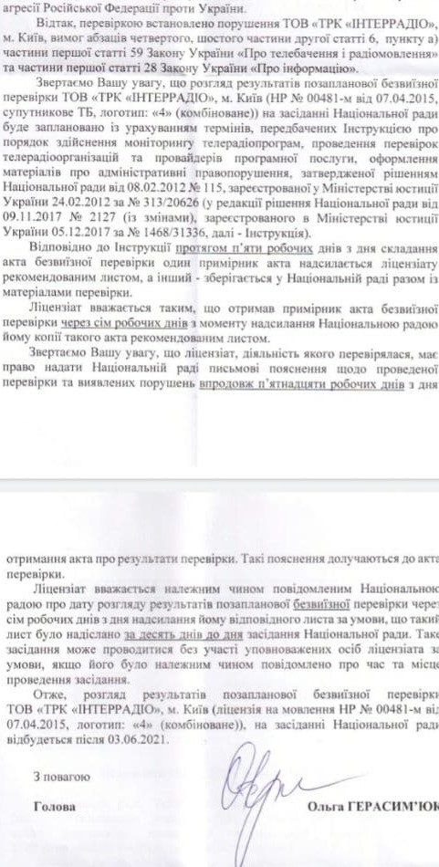 • пункта а) части первой статьи 59 Закона Украины "О телевидении и радиовещании" (Телерадиоорганизация обязана придерживаться законодательства Украины и требований лицензии);