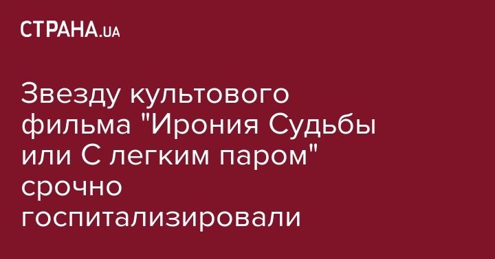 Звезду культового фильма "Ирония Судьбы или С легким паром" срочно госпитализировали