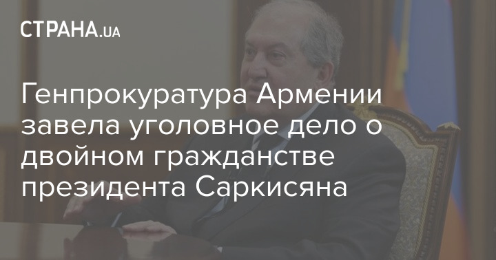 Генеральная прокуратура Армении возбудила уголовное дело о сокрытии двойного гражданства Арменом Саркисяном, который в 2018 году стал президентом республики.