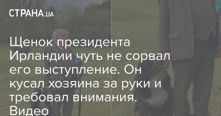 В Ирландии во время выступления лидера страны Майкла Хиггинса произошел курьезный случай. Его собака, сидевшая рядом, требовала внимания и хотела играть. Она кусала президента за руки и совала нос в пиджак.