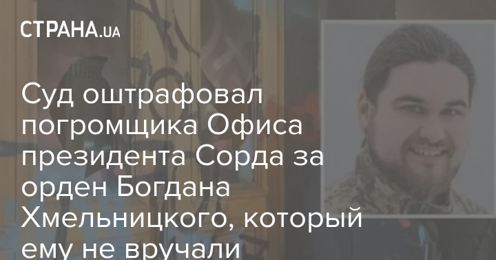 Суд оштрафовал погромщика Офиса президента Сорда за орден Богдана Хмельницкого, который ему не вручали