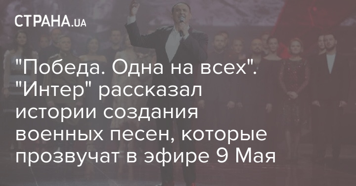 В воскресенье, 9 мая, в большом праздничном концерте "Победа. Одна на всех" на "Интере" прозвучат и другие известные и любимые миллионами телезрителей песни о Великой Отечественной войне: "Десятый батальон", "Катюша", "До свидания, мальчики", "Священная война". Истории создания этих произведений собраны в спецпрокте "Песни Победы. Связь поколений".