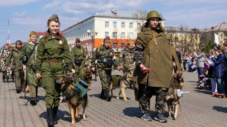 "Девятого мая в строю, одетые в военную форму и стилизованные костюмы, прошагали врачи, учителя, спортсмены, шахтеры… Под лозунгом "Помним, любим, чтим, гордимся" колонна стартовала от площади Согласия... Конечной точкой маршрута стала площадь Весенняя. Междуреченцам представили "лохматых героев", рассказали о роли собак во время Великой Отечественной войны и продемонстрировали общий курс дрессировки", – уточняется в сообщении.