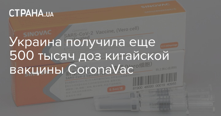 Украина получила еще полмиллиона доз китайской вакцины от коронавируса CoronaVac. Скриншот