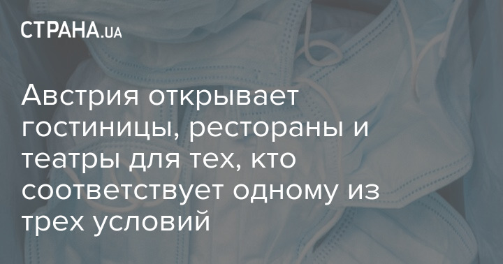 С 19 мая в Австрии заработают рестораны, гостиницы, театры, а также другие заведения сферы туризма, культуры и спорта. Но посетить их можно будет лишь при наличии одного из условий: получения отрицательного теста на коронавирус, вакцинирования или же выздоровления от коронавируса при наличие антител.