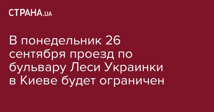 В понедельник 26 сентября проезд по бульвару Леси Украинки в Киеве будет ограничен