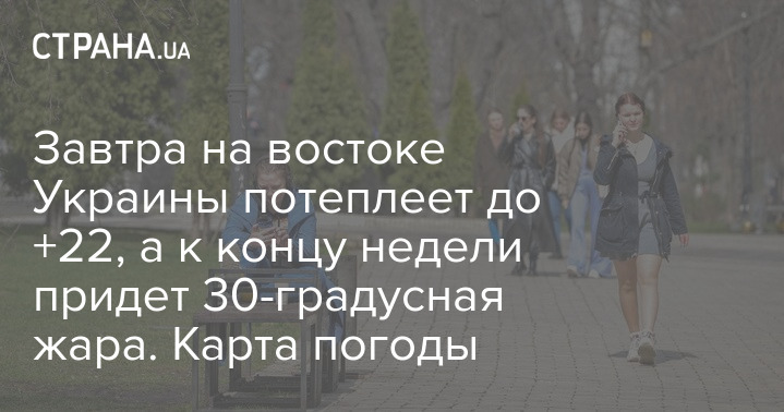Завтра на востоке Украины потеплеет до +22, а к концу недели придет 30-градусная жара. Карта погоды