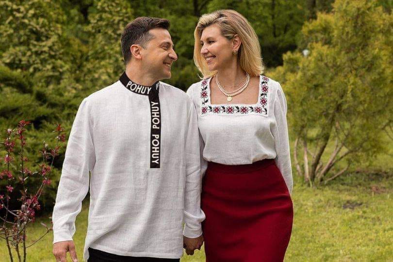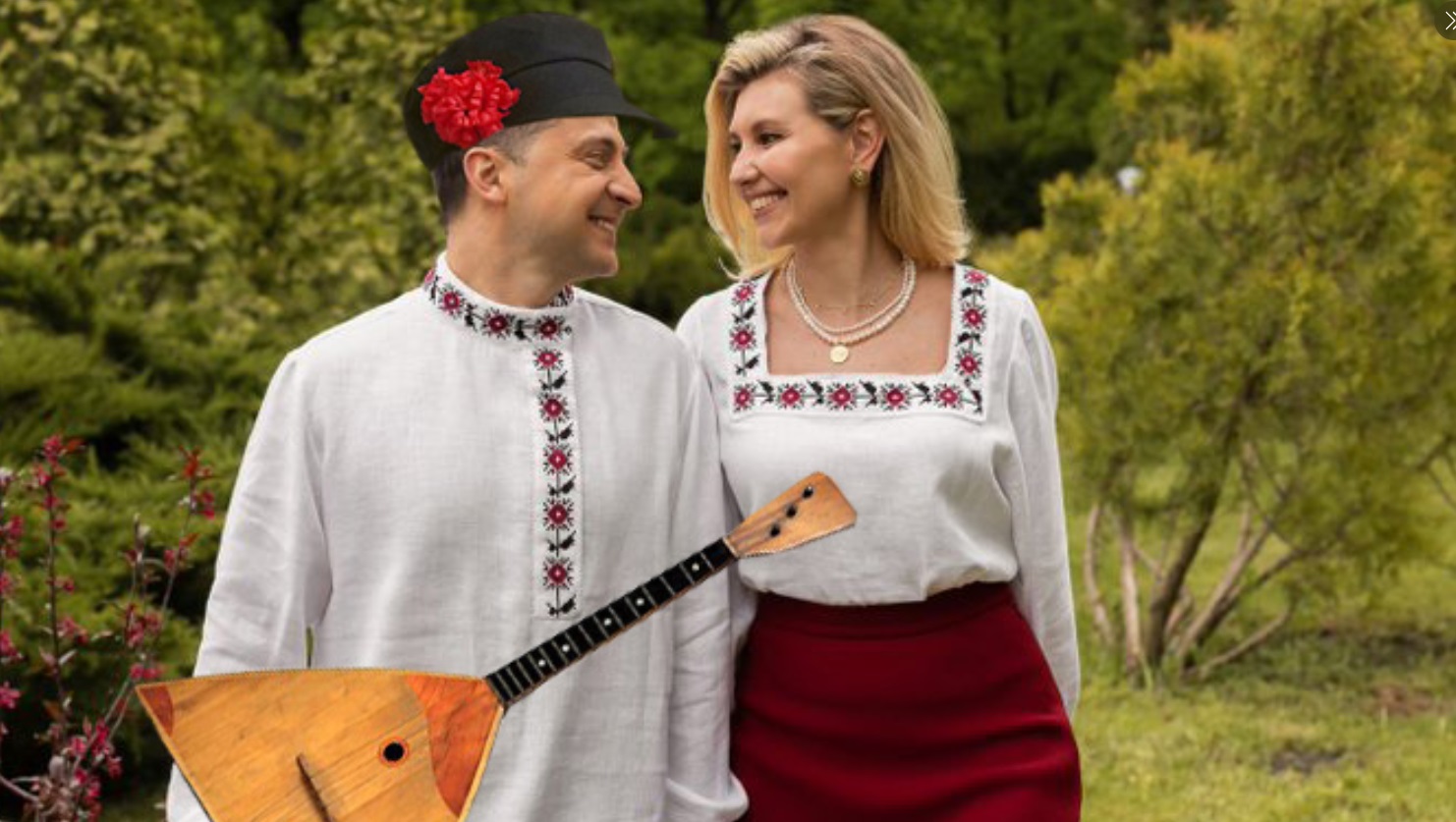 Но больше всех костюмом отличилась супружеская чета Зеленских. Многие рассмотрели на их совместном снимке страшную "зраду" - не классическую вышиванку, а русскую косоворотку