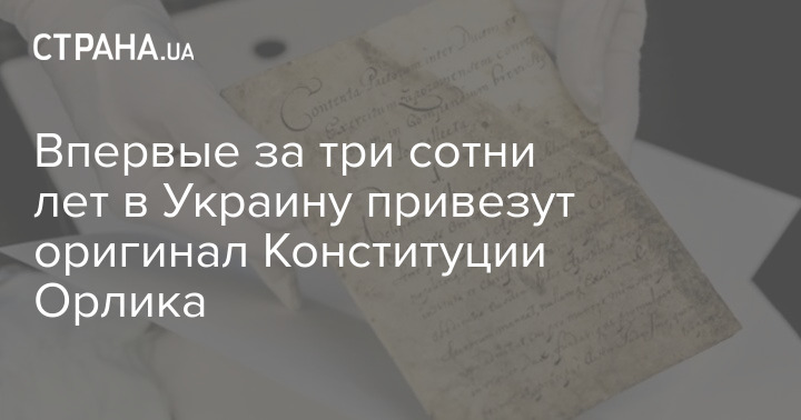 В Украину по случаю 30-летия со дня независимости страны впервые за три сотни лет привезут оригинал страницы первой Конституции Украины, автором которой является гетман Пилип Орлик.