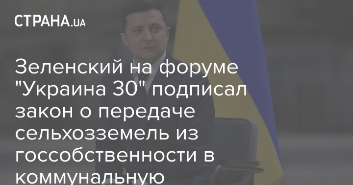 Зеленский на форуме "Украина 30" подписал закон о передаче сельхозземель из госсобственности в коммунальную