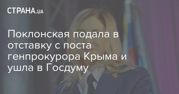 Руководитель прокуратуры аннексированного Крыма Наталья Поклонская, которая стала депутатом Госдумы РФ от "Единой России", написала заявление об отставке. Об этом сообщает "РИА Новости".