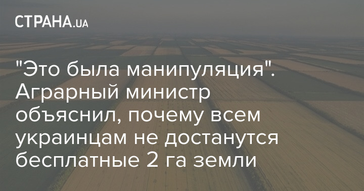 "Это была манипуляция". Аграрный министр объяснил, почему всем украинцам не достанутся бесплатные 2 га земли