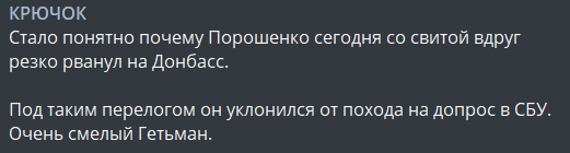 Впрочем, адвокаты бывшего гаранта уже заявили, что он этой повестки просто не получал. Хотя, беря во внимание, что не знать о вызове Порошенко не мог, его поездка на восток выглядит вполне однозначно.