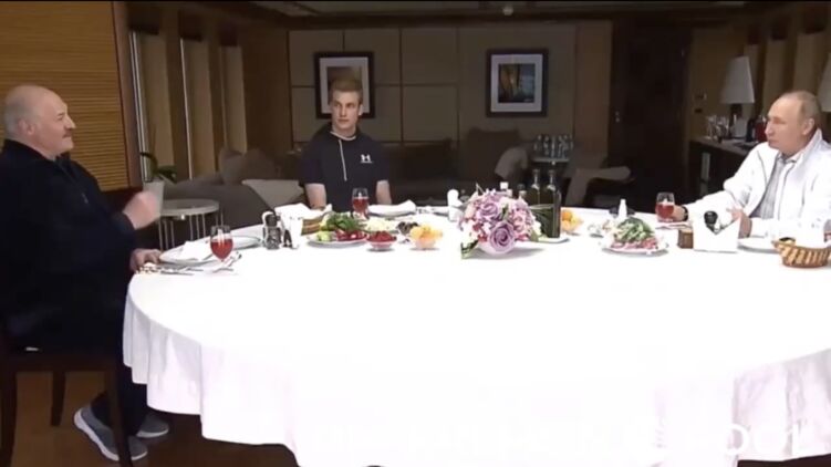 Лукашенко с сыном сидят за столом с Путиным. Скриншот из видео