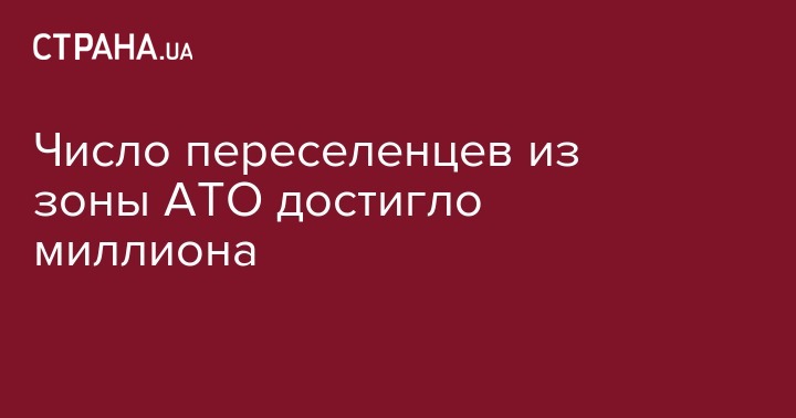 "С начала проведения на востоке Украины антитеррористической операции с временно оккупированной территории и районов проведения антитеррористической операции в другие регионы переселено 1 млн 18 тыс. 484 человека, в том числе из Донецкой и Луганской областей 996,553 тыс. человек, из Автономной Республики Крым и Севастополя 21,931 тыс. человек, из которых 168,545 тыс. детей, 491,374 тыс. инвалидов и лиц пожилого возраста", говорится в сообщении.