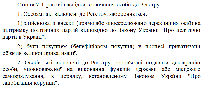 Последний момент - это запрет для чиновников контактировать с "олигархами" и связанными лицами, внесенными в реестр.
