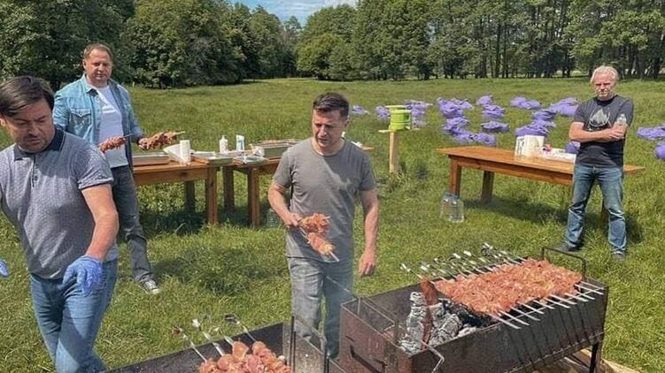 На нарезку салатов поставили Наталью Мосейчук, гостей посадили буквой "П". Подробности шашлык-пати Зеленского