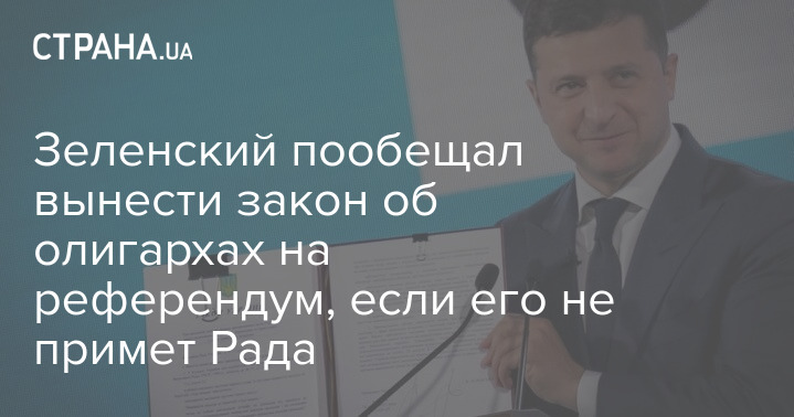 Президент Украины Владимир Зеленский заявил, что вынесет законопроект "О предотвращении угроз национальной безопасности, связанных с чрезмерным влиянием лиц, имеющих значительный экономический или политический вес в общественной жизни (олигархов)" на референдум, если его не примет Верховная Рада.