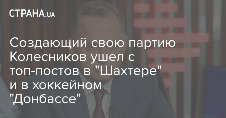 Создающий партию "Украина - наш дом" Борис Колесников объявил об уходе с постов президента хоккейного клуба "Донбасс" и вице-президента ФК "Шахтер".