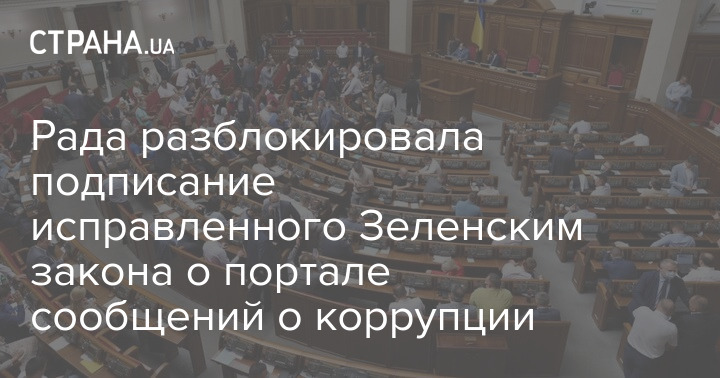 Рада разблокировала подписание исправленного Зеленским закона о портале сообщений о коррупции