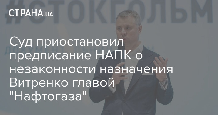 Киевский Окружной административный суд решил приостановить действие предписания Национального агентства по вопросам предотвращения коррупции в Кабмин, которые требовало уволить главу правления "Нафтогаза" Юрия Витренко.