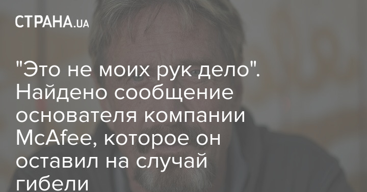 Джон Макафи, основавший компанию McAfee, которая разрабатывает антивирусное программное обеспечение, и найденный мертвым в тюрьме Барселоны, оставил запись на случай своей смерти. В ней он предупреждал, что не собирается сам обрывать свою жизнь.
