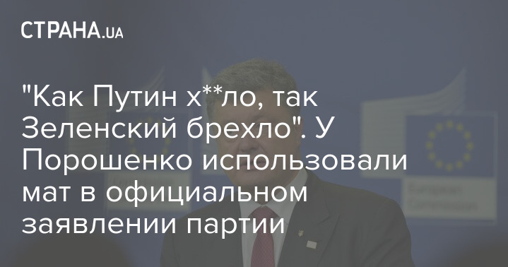 "Новое в политическом маркетинге. Использование мата в официальном заявлении партии. В данном случае - Европейской солидарности Порошенко. Их так возмутило вчерашнее интервью Зеленского, что мат был вынесен прямо в заголовок, а по тексту Мосийчук с 1+1 сравнили со Скабеевой", - комментирует Telegram-канал "Политика Страны".