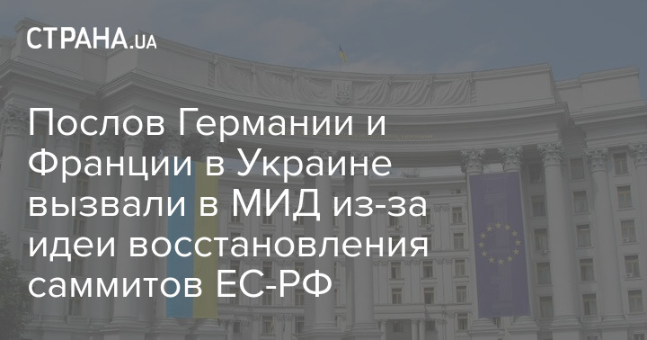 В пятницу, 25 июня, в Министерство иностранных дел Украины пригласили послов Германии и Франции для обсуждения инициативы Парижа и Берлина о восстановлении саммита ЕС-Россия.