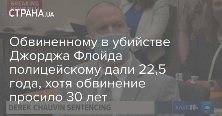 Бывшего полицейского Дерека Шовина, признанного виновным в убийстве чернокожего Джорджа Флойда, 25 июня приговорили к 22,5 годам тюрьмы. Такой вердикт вынес суд в Миннеаполисе.