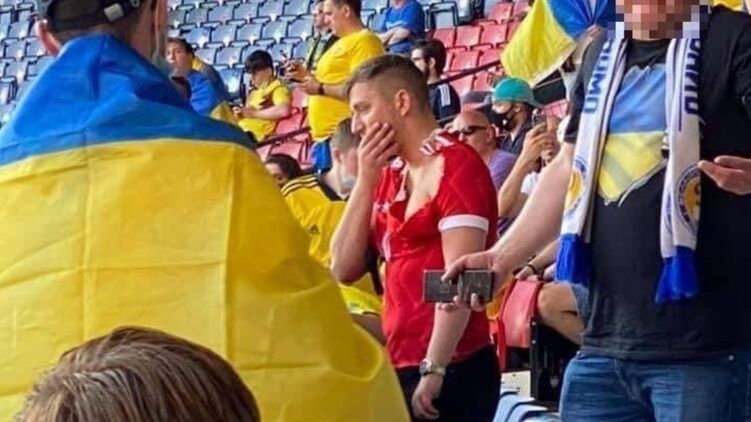 Болельщику, который пришел с российским триколором, в шапке с советской символикой на матч Украина - Швеция и обнимался с украинским фанатом, порвали футболку.