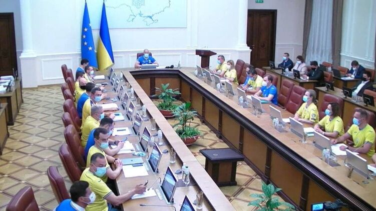 Все члены Кабмина пришли на заседание в футболках сборной Украины. Фото