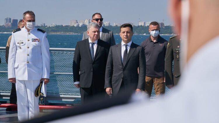 Зеленский в Одесской области посетил эсминец "Росс" Военно-морских сил (ВМС) США, который участвует в международных военно-морских учениях "Си Бриз – 2021" и пообщался с командующим 6-го флота ВМС США вице-адмиралом Юджином Блэком.
