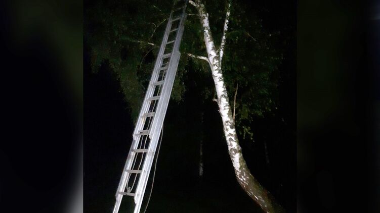 Подо Львовом убегающий от буллинга мальчик забрался на 8 метров по дереву. Оттуда его доставали спасатели
