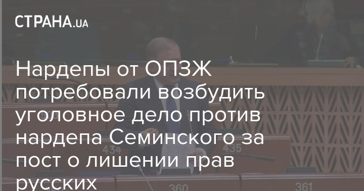 Нардеп от "Оппозиционной платформы - За жизнь" Олег Волошин и его коллеги по фракции направили генеральному прокурору заявление о совершении уголовного преступления депутатом от "Слуги Народа" Олегом Семинским, который сначала опубликовал пост в Facebook о лишении граждан Украины русской национальности конституционных прав.