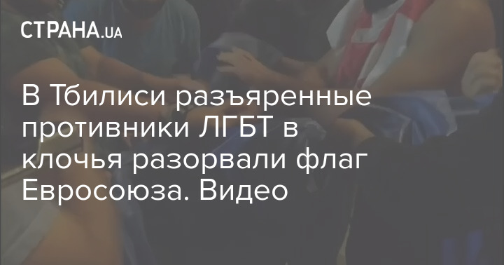 Вечером во вторник, 6 июля, в грузинском Тбилиси разъяренные противники ЛГБТ разорвали флаг Евросоюза у здания парламента страны.